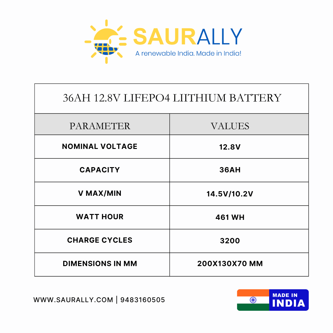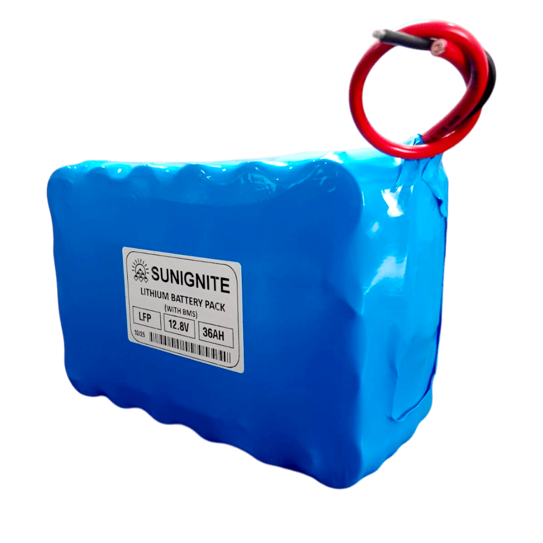 36Ah 12.8V Lithium Ferro Phosphate LiFePO4 Battery Pack With BMS is used in Agriculture Spray Pumps, Computer UPS, Solar Street Lights, Solar Cameras, Solar Homekits, Solar Lightinig, Solar Fencing Machine, Computer UPS etc.